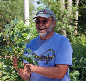 Until his retirement in June of 2015, Russ Cohen’s “day job” was serving as the Rivers Advocate for the Massachusetts Department of Fish and Game’s Division of Ecological Restoration, where one of his areas of expertise was in riparian vegetation. Now Russ has more time to pursue his passionate avocation, which is connecting to nature via his taste buds, and teaching others how to do the same. Russ is now playing the role of “Johnny Appleseed” for edible native species. He has set up a small nursery (in Weston, MA) where he grows/keeps over 1,000 plants that he propagates from seed (some of which he collected himself), as well as obtained from other sources, such as the Native Plant Trust. He is then partnering with land trusts, cities and towns, schools and colleges, state and federal agencies, organic farms, tribal groups and others to plant plants from his nursery in appropriate places on their properties. Russ has initiated over two dozen such projects in the past five years.
